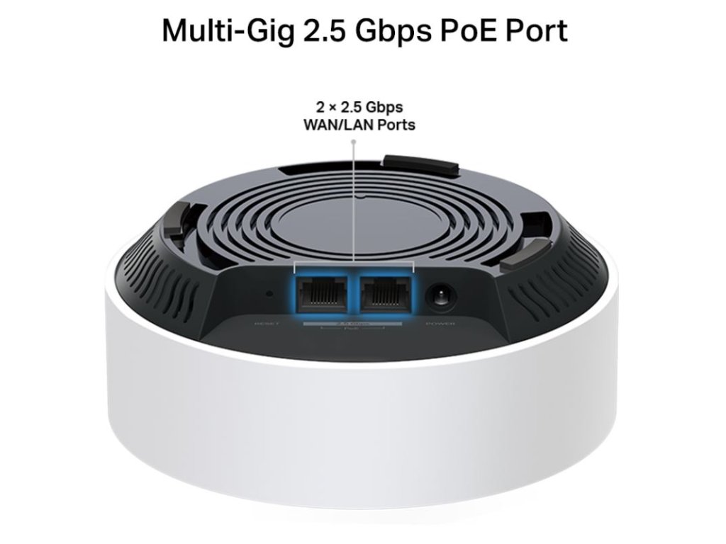 Porty: 2× 2.5 Gbps Ethernet porty s automatickým rozpoznávaním WAN/LAN