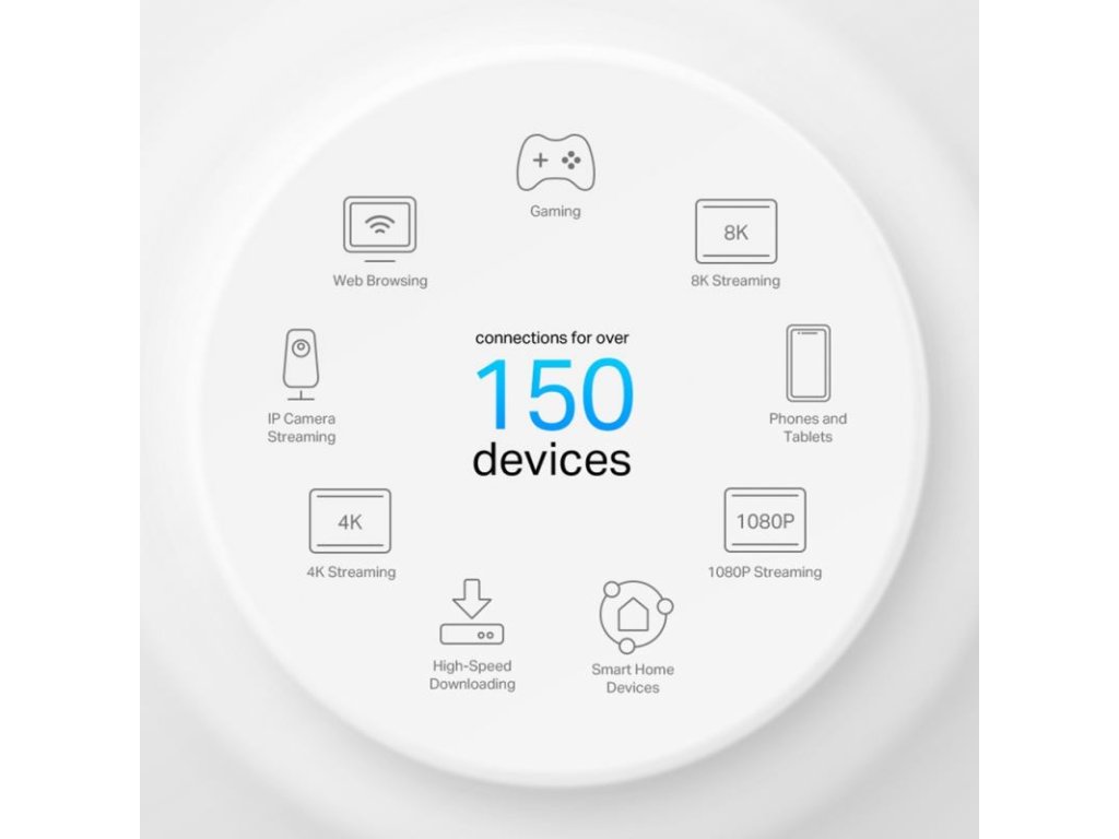 Zbavte sa miest so slabým signálom pomocou jedinej Wi-Fi siete, ktorá pokryje každý kútik vašej domácnosti funkciou bezproblémového roamingu, adaptívneho smerovania a automatického odstraňovania problémov. Už žiadne hľadanie miest so stabilným pripojením, či už ste v suteréne, garáži, alebo na dvore.