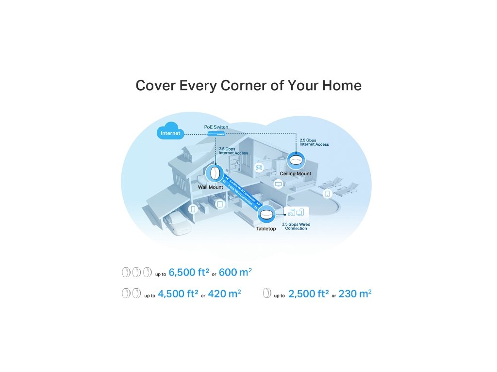 Zbavte sa miest so slabým signálom pomocou jedinej Wi-Fi siete, ktorá pokryje každý kútik vašej domácnosti funkciou bezproblémového roamingu, adaptívneho smerovania a automatického odstraňovania problémov. Už žiadne hľadanie miest so stabilným pripojením, či už ste v suteréne, garáži, alebo na dvore.