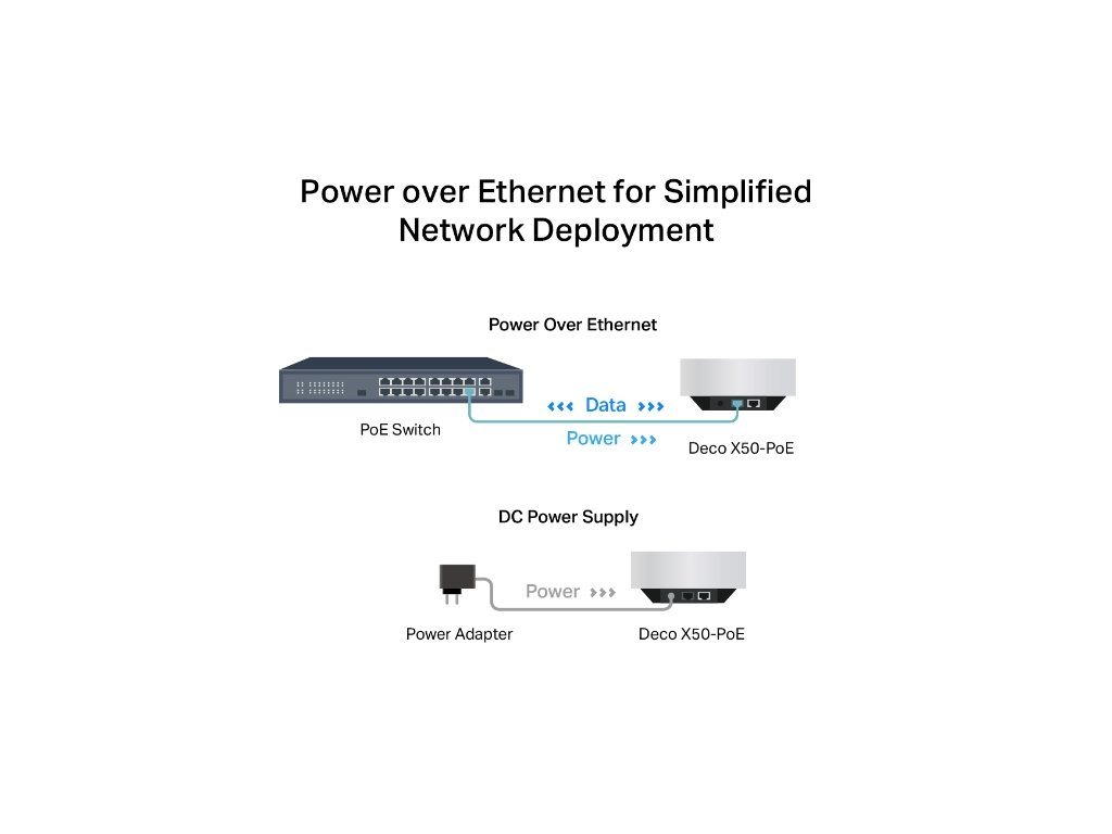 1-pack: 1× Deco X50-PoE jednotka, 1× RJ45 kábel, 1× adaptér, montážna súprava, príručka