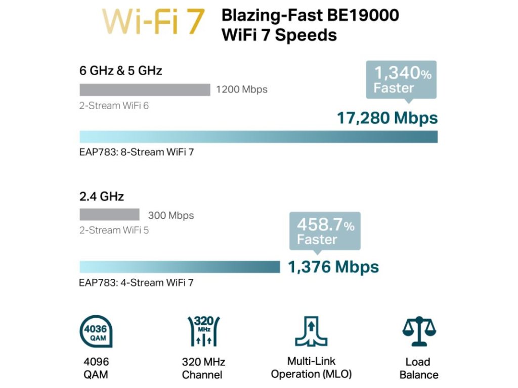 Rýchlosť signálu: 6 GHz: až 11 520 Mb/s, 5 GHz: až 8 640 Mb/s, 2,4 GHz: až 1 376 Mb/s