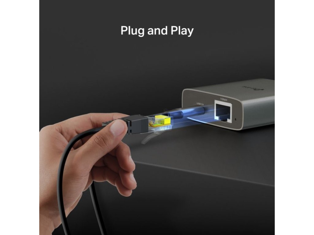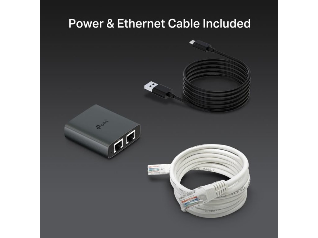 Balenie obsahuje USB-C napájací kábel a Cat 5e kábel, ktorý vám umožní jednoduché pripojenie a používanie.