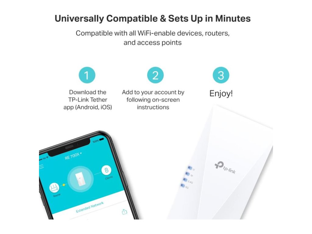 TP-Link RE700X, AX3000 Wi-Fi 6 Range Extender