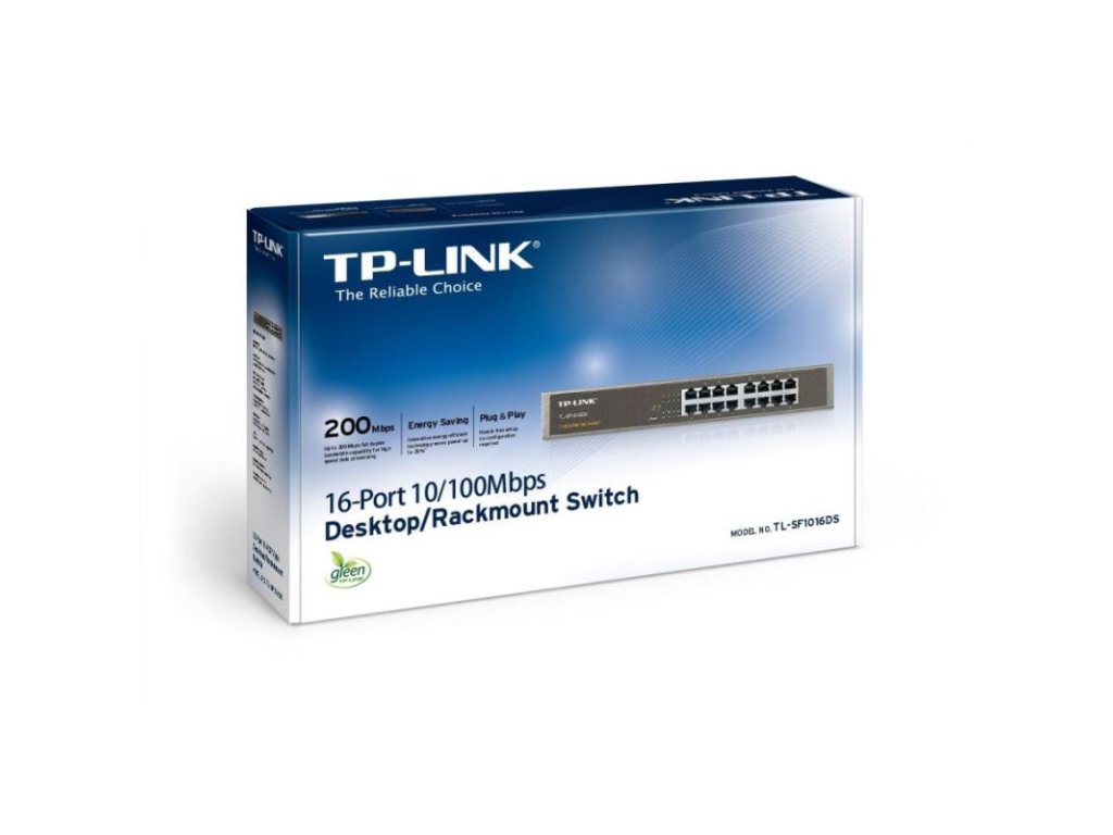 Prepínač TL-SF1016DS Fast Ethernet predstavuje výkonnú, cenovo dostupnú, ľahko použiteľnú, bezproblémovú a štandardnú možnosť upgradovania starej siete na sieť s rýchlosťou 1 000 Mbit/s. Všetkých 16 portov podporuje funkciu Auto MDI / MDIX, vďaka ktorej sa nemusíte starať o príslušný typ kábla - stačí zapojiť a používať. Navyše s inovatívnou technológiou úspory energie dokáže zariadenie TL-SF1016DS znížiť spotrebu energie až o 25%; 80% obalového materiálu možno recyklovať. To všetko z tohto zariadenia činí ekologické riešenie pre vašu firemnú sieť.