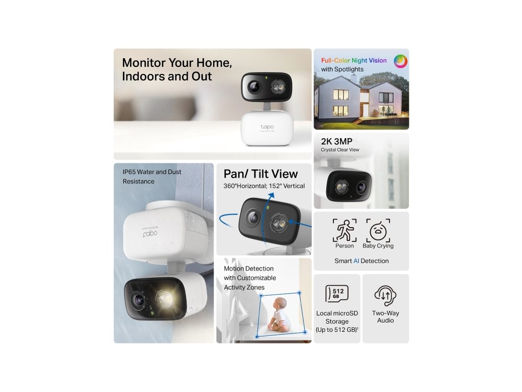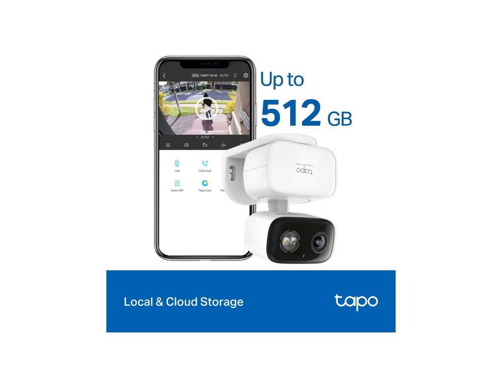 Úložisko: Možnosť uložiť nahrávky na microSD kartu (až 512 GB) alebo do cloudového úložiska Tapo Care.