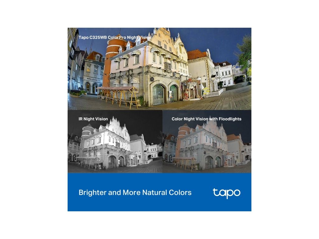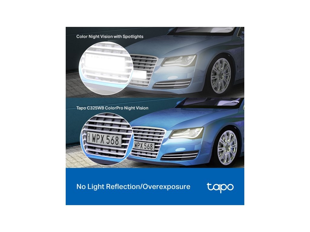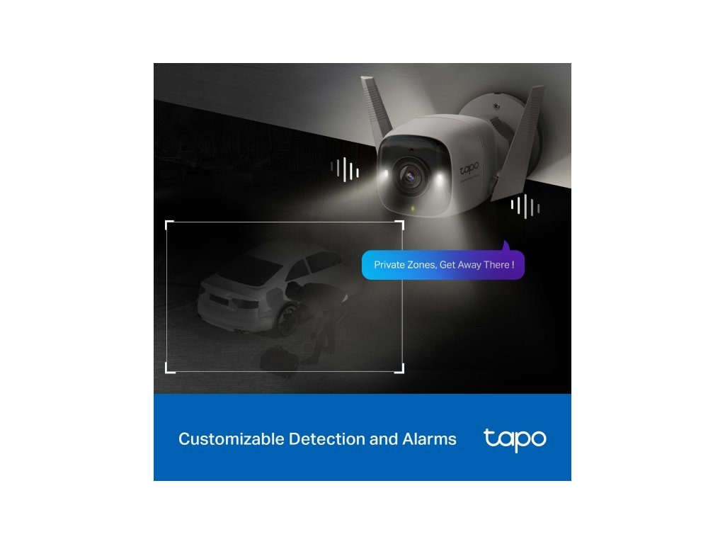 Funkcie: nočné farebné videnie, inteligentná detekcia a upozornenia AI (pohyb, ľudia, domáce zvieratá, autá, abnormálny zvuk), zvukový a svetelný alarm, diaľkové ovládanie, obojsmerný zvuk, hlasové ovládanie (funguje s Google Assistant a Alexa), Miestne úložisko cez microSD kartu (až 512 GB), Tapo App, Frustration-Free Setup (FFS)