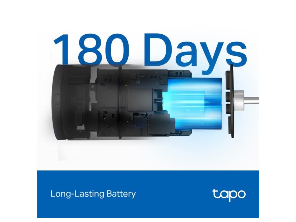 Predĺžená životnosť batérie: S až 180 dňami zabezpečenia na jedno nabitie, Tapo C411 minimalizuje potrebu údržby a zaisťuje pokračujúcu ochranu.