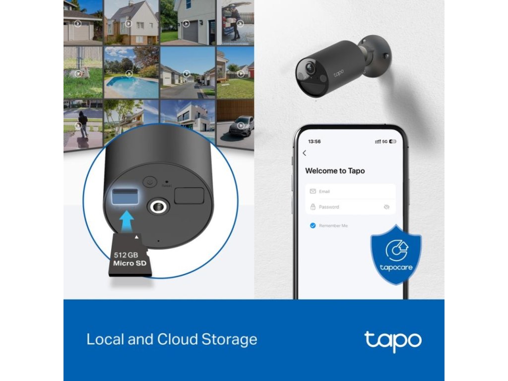 Ukladanie: MicroSD slot (až do 512 GB), cloudové služby Tapo Care (vyžaduje predplatné)