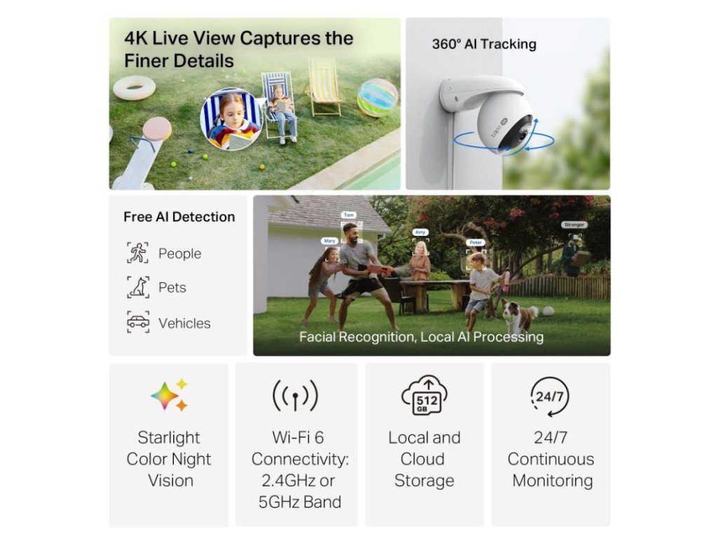 4K Ultimate View - Vonkajšia bezpečnostná kamera Tapo C560WS poskytuje najvyššiu kvalitu obrazu v rozlíšení 4K, ktorá zachytí aj tie najmenšie detaily okolia vášho domova.