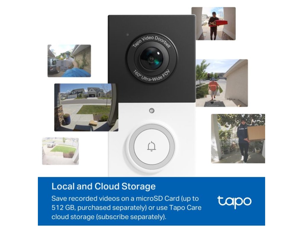 Miestne a cloudové úložisko: Podporuje bezplatné lokálne úložisko s kartou microSD (až 512 GB, predáva sa samostatne) alebo cloudové úložisko s predplatným Tapo Care.
