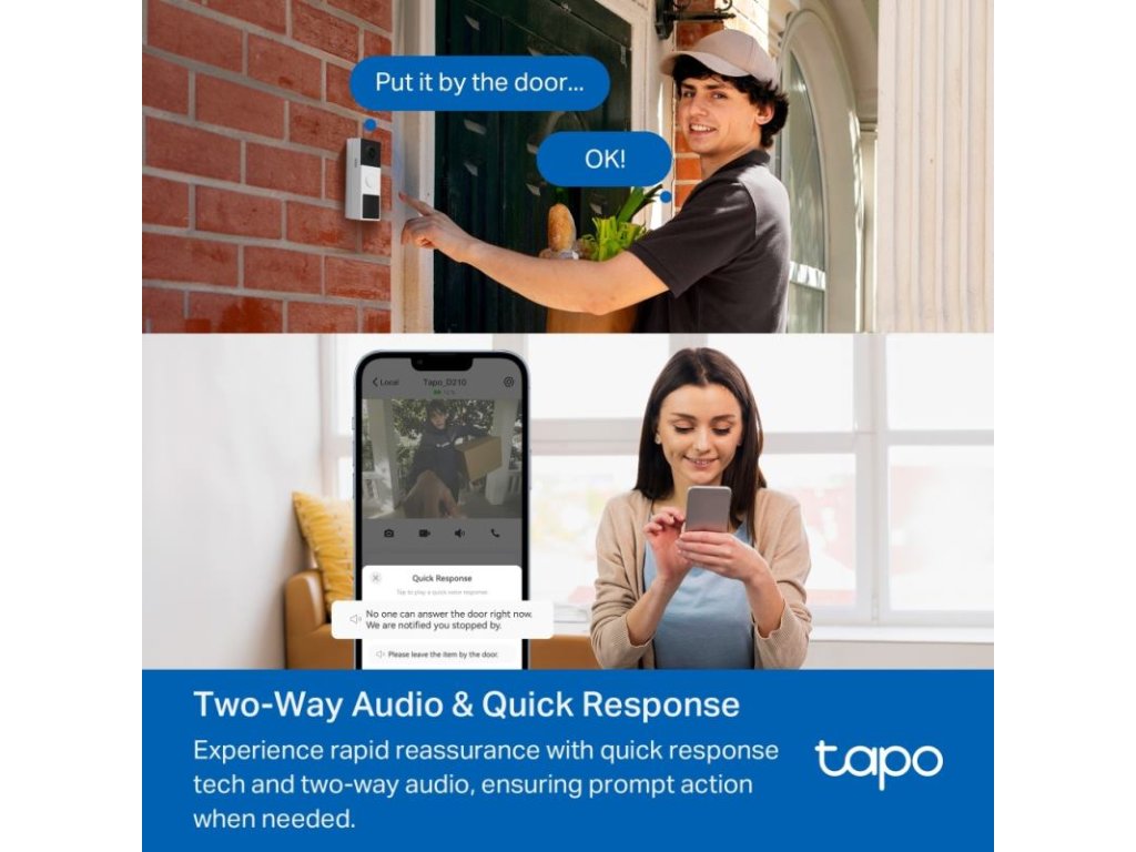 Zazvoňte - nikdy nezmeškáte návštevníka: Prijmite telefonický hovor, aby ste mohli pohodlne komunikovať s návštevou, bez otvárania aplikácie Tapo.