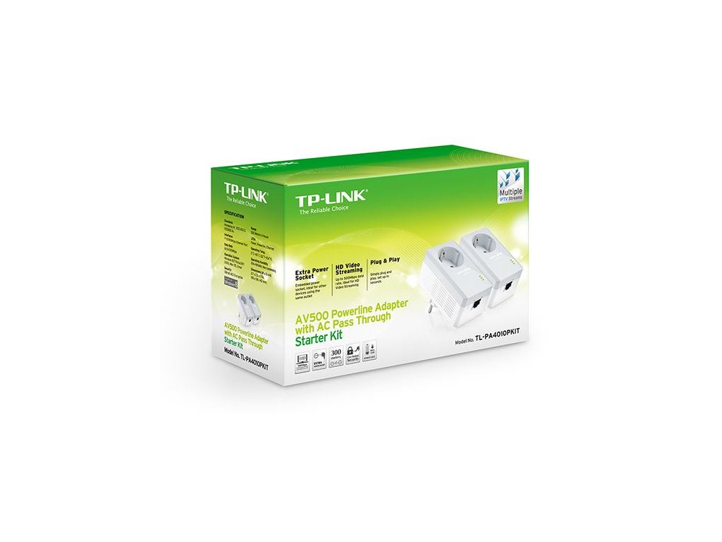 Vďaka pokročilej technológii HomePlug AV poskytuje TL-PA4010PKIT užívateľom stabilný a vysokorýchlostný prenos dát rýchlosťou až 600 Mbit / s cez elektrický okruh domácnosti na vzdialenosť až 300 metrov. TL-PA4010PKIT je skvelou voľbou pre kompletné domáce riešenie určené pre pripojenie všetkých sieťovo kompatibilných zariadení - od počítačov a herných konzol až po set-top boxy pre IPTV, tlačiarne a pevné disky NAS.