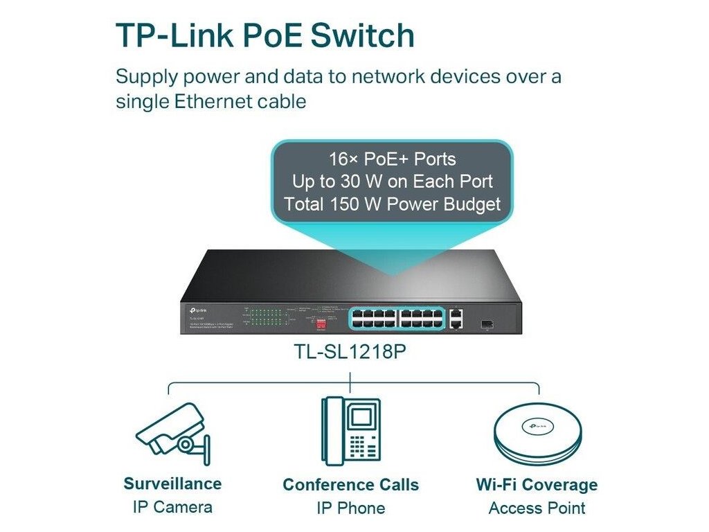 TP-Link TL-SL1218P, Switch 16-Port/100Mbps/Rack
