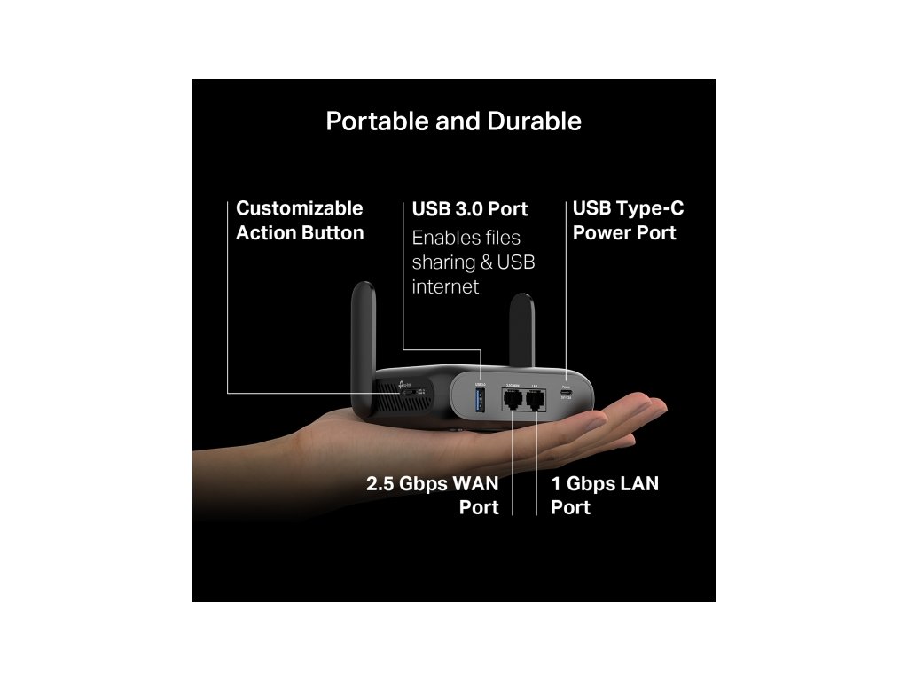 Napájanie z powerbanky: Vďaka rozhraniu typu C môžete router flexibilne napájať pomocou powerbanky a používať ho ako mobilné zariadenie.