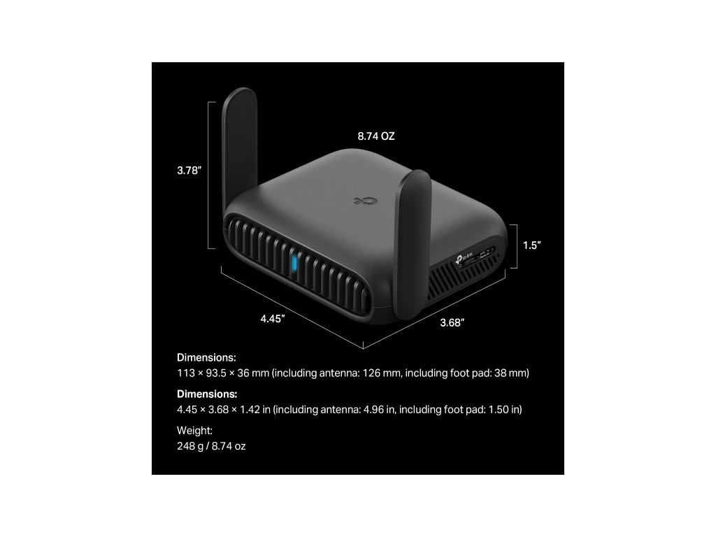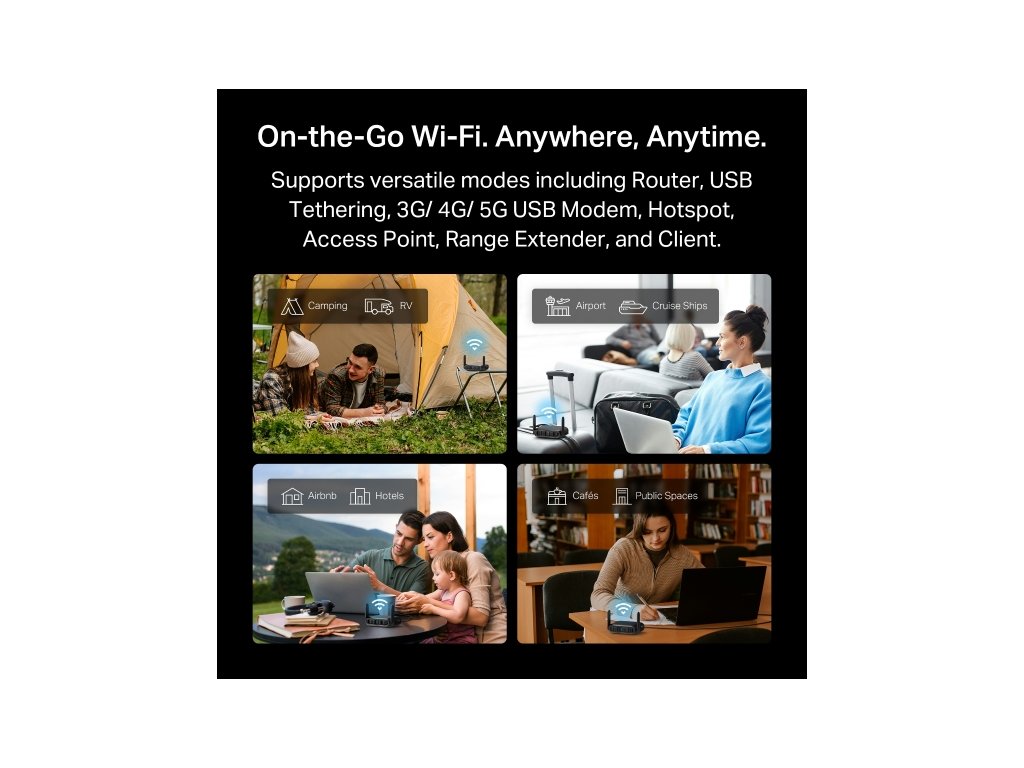 Spoľahlivá sieť kdekoľvek: Podporuje viacero režimov (Router, Zdieľanie pripojenia cez USB, 3G/4G USB Modem, Hotspot, Prístupový bod, Rozširovač dosahu, Klient), čo vám umožní vytvoriť Wi-Fi sieť v rôznych situáciách - doma, v hotelovej izbe alebo na cestách.