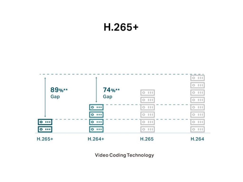 H.265+: Bez použitia dodatočnej šírky pásma môžu vaše kamery prenášať komprimované a krištáľovo čisté obrazy, pričom šetria miesto na disku, znižujú zaťaženie siete a náklady na monitorovanie bez toho, aby bola obetovaná kvalita obrazu.