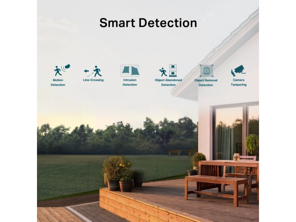 Inteligentná detekcia: Prijímajte oznámenia a kontrolujte kanály, keď niekto prekročí hranicu, vstúpi do nastavenej oblasti, zablokuje kameru alebo odstráni/odhodí predmety.