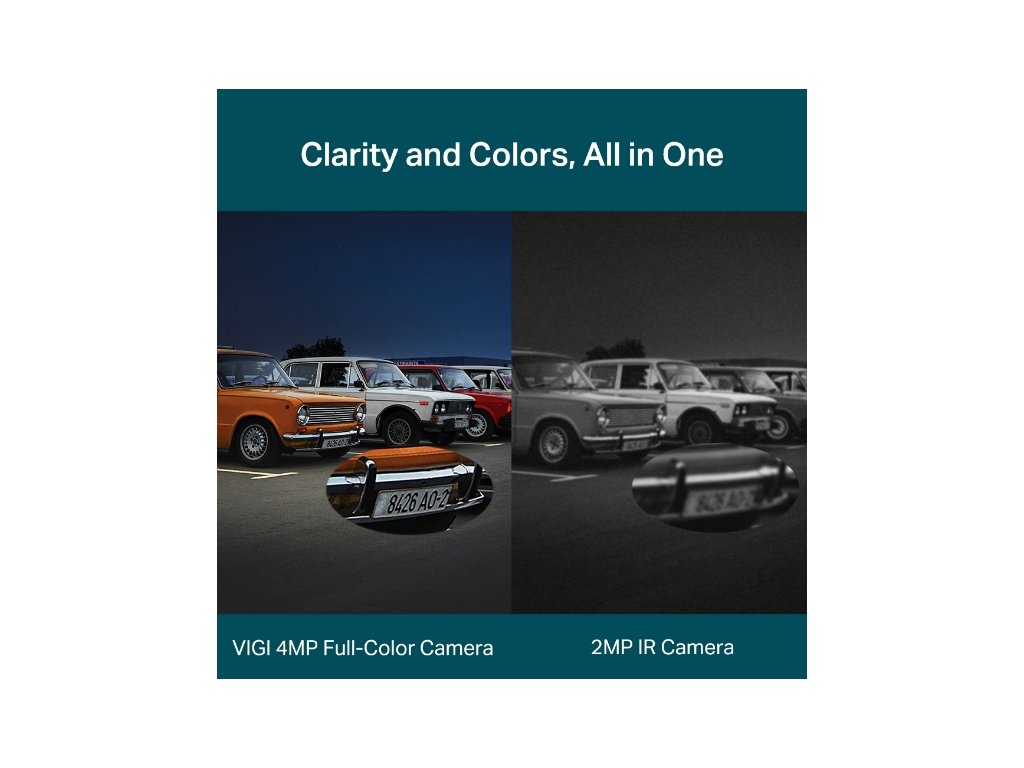 Nepretržité farebné snímanie (Full-Color): Vďaka objektívu s veľkou clonou, veľmi citlivému snímaču a bielemu LED prísvitu získate po 24 hodín farebné detaily aj v čierno-čiernych podmienkach.