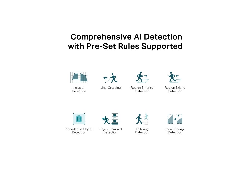 Inteligentná detekcia: Aktívne zisťuje abnormálne udalosti, ako je narušenie oblasti a prekročenie čiary, a okamžite vám posiela upozornenia.