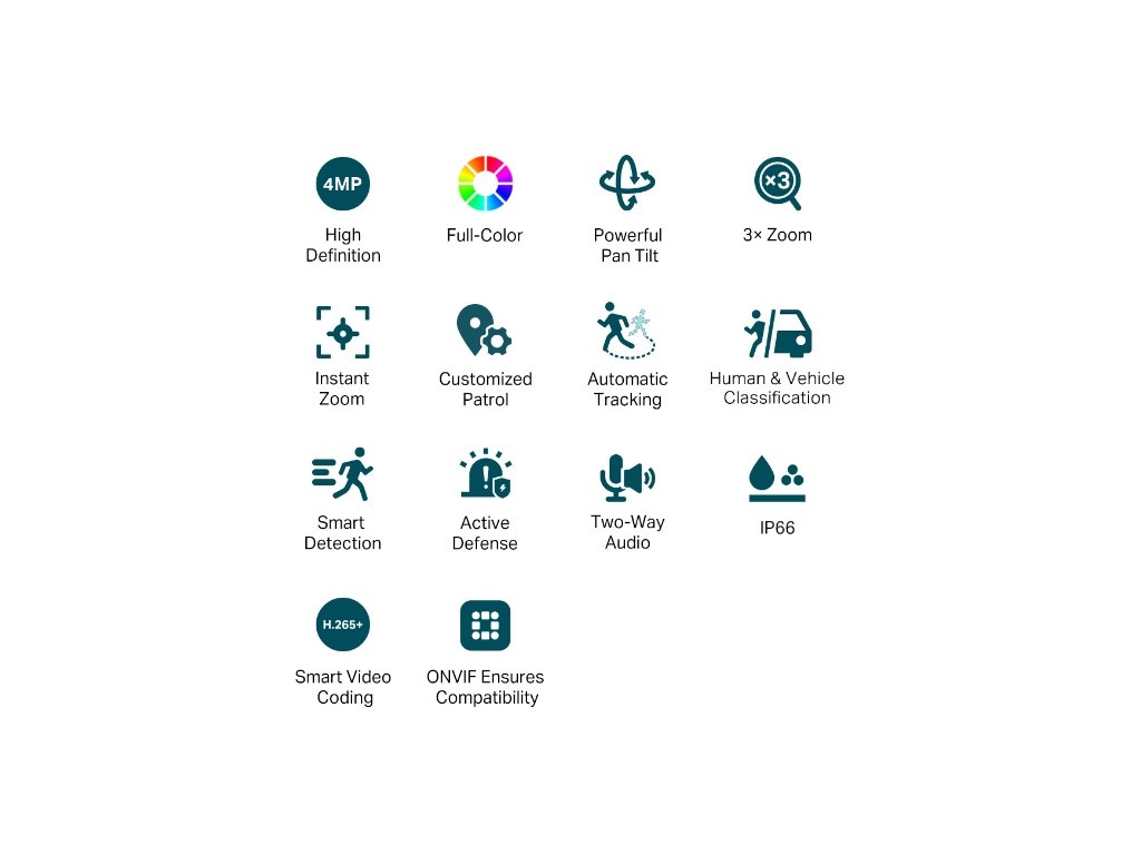 Aktívna obrana: Okamžite varujte potenciálnych narušiteľov zvukom a svetlom, keď dôjde k abnormálnym udalostiam.