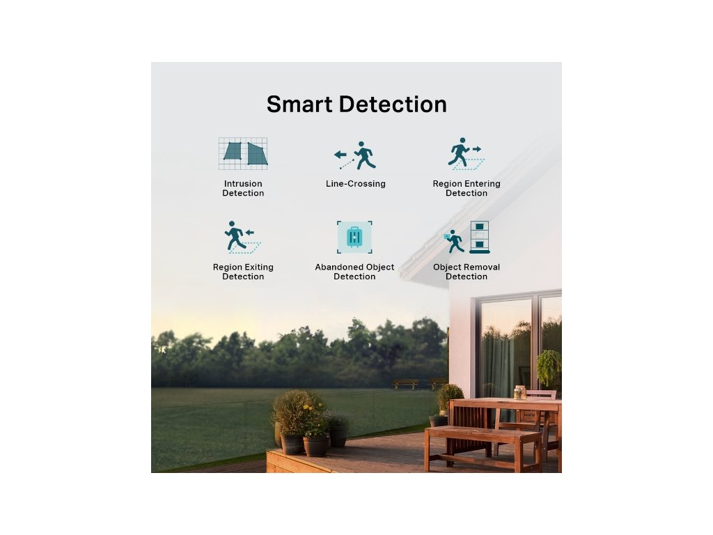 Inteligentná detekcia: Prijímajte upozornenia a kontrolujte informačné kanály, keď niekto prekročí hranicu, vstúpi do oblasti, ktorú ste nastavili, bráni kamere, odstráni/opustí objekty alebo vstúpi/opustí určitú oblasť.
