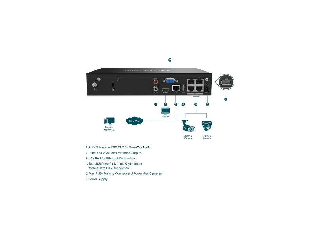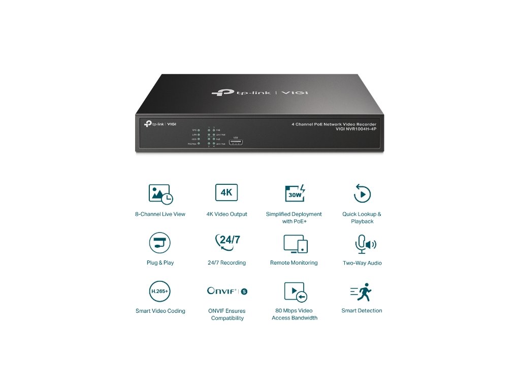 TP-Link VIGI NVR1004H-4P, 4 kanálový NVR
