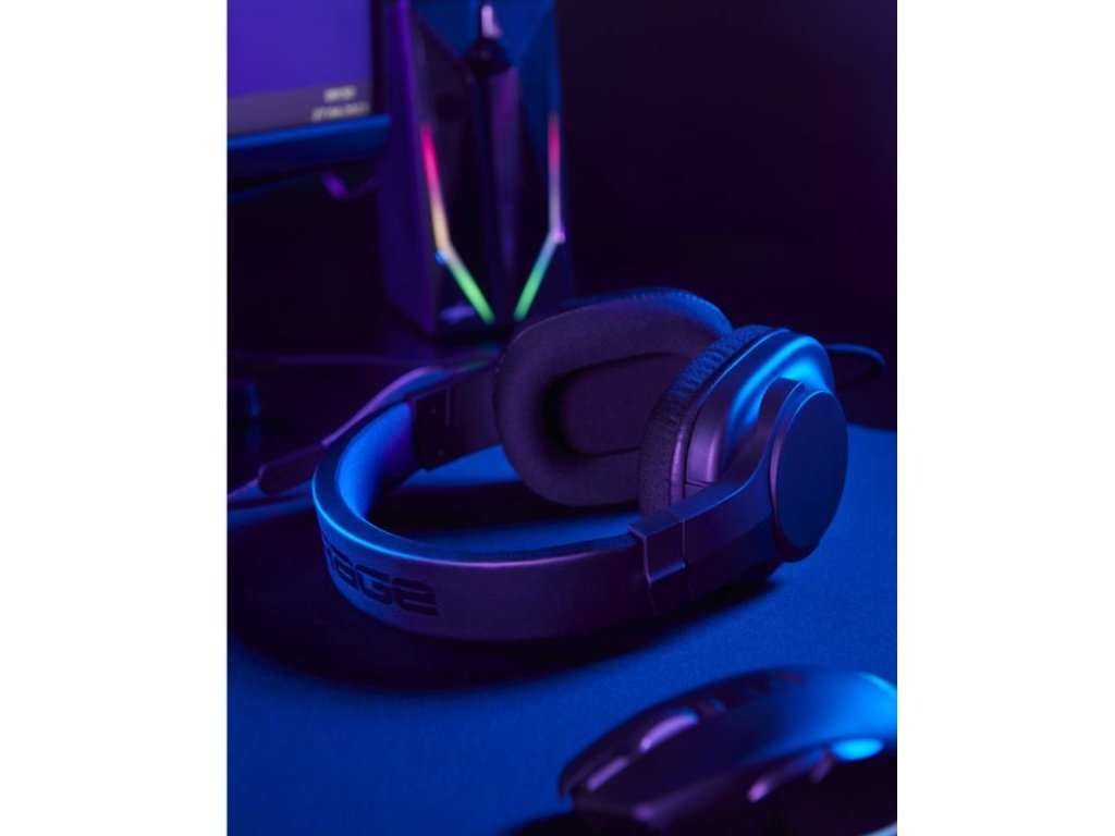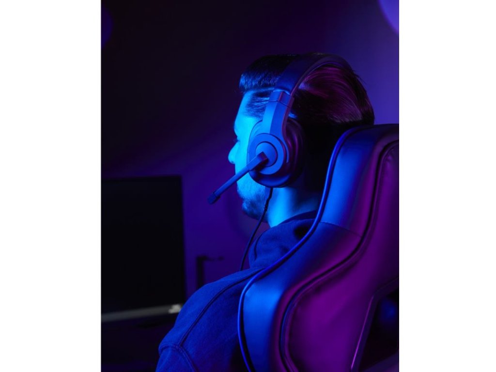 - Gamingový stereo headset s uzavretou konštrukciou over-ear, s čistým zvukom a nastaviteľným hlavovým oblúkom a ramenom mikrofónu