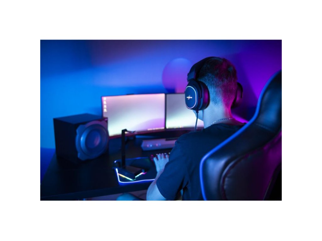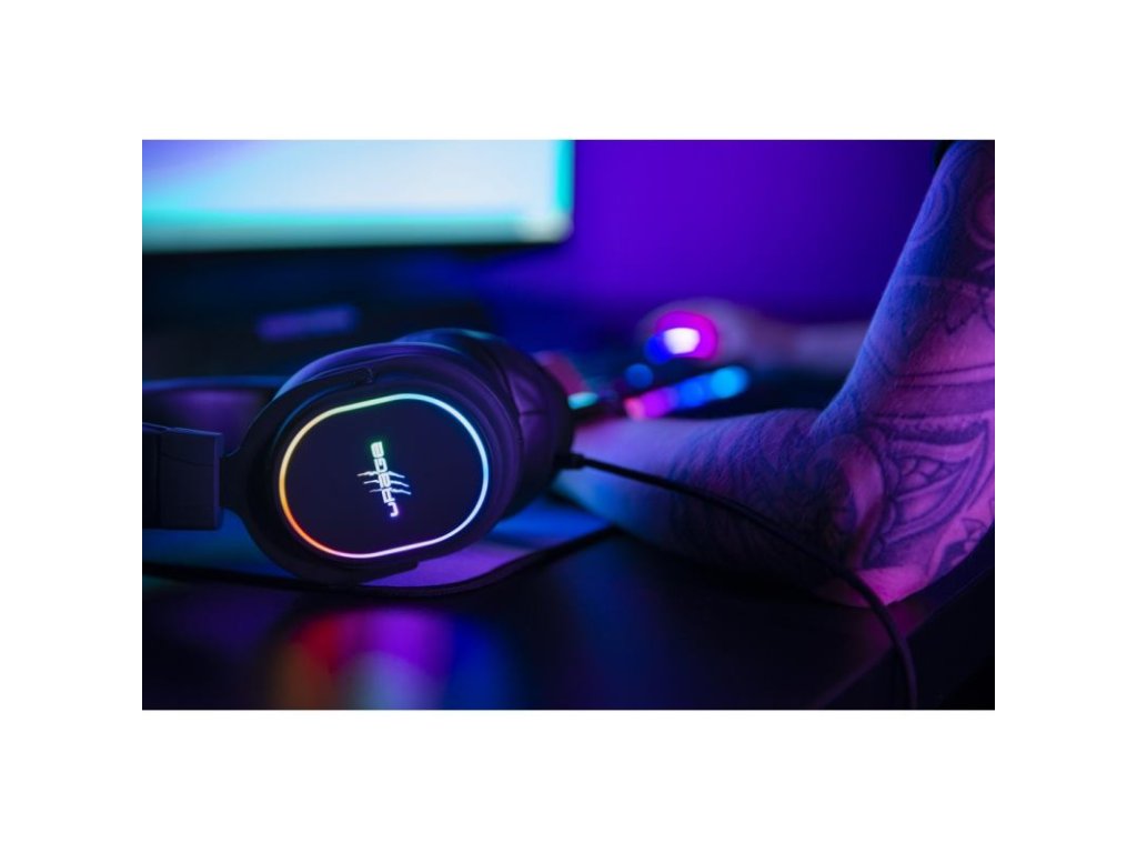 - Gamingový stereo headset s uzavretou konštrukciou over-ear a virtuálnym priestorovým zvukom 7.1