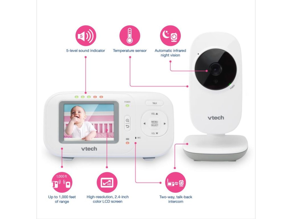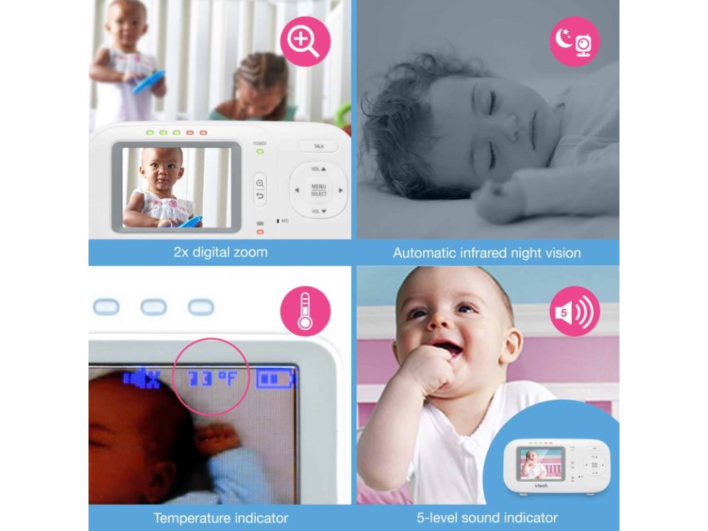 Možno pripojiť až 4 kamery kompatibilné s rodičovskou jednotkou (predávajú sa samostatne)