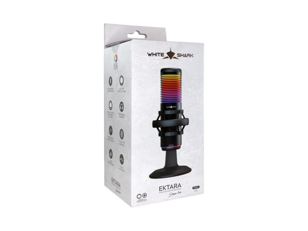 Predstavujeme EKTARA White Shark - mikrofón, ktorý transformuje váš hlas a vizuálny zážitok! Navrhnutý pre hráčov, streamerov a tvorcov obsahu, EKTARA prináša krištáľovo čistý zvuk a pôsobivý dizajn.