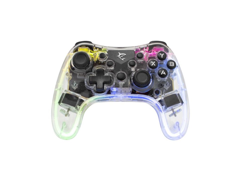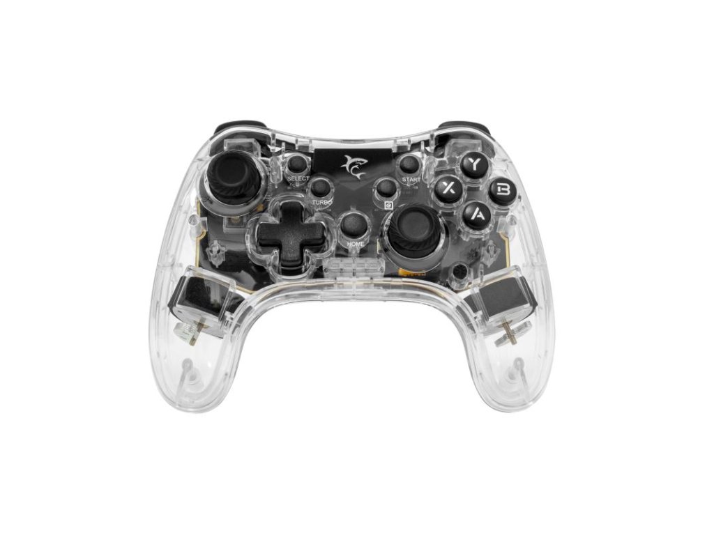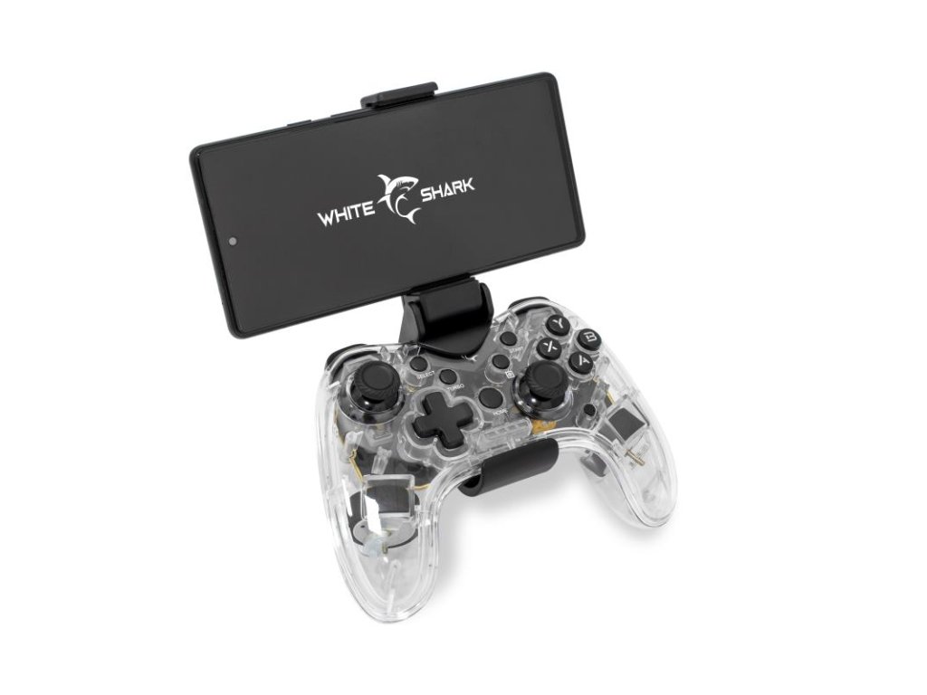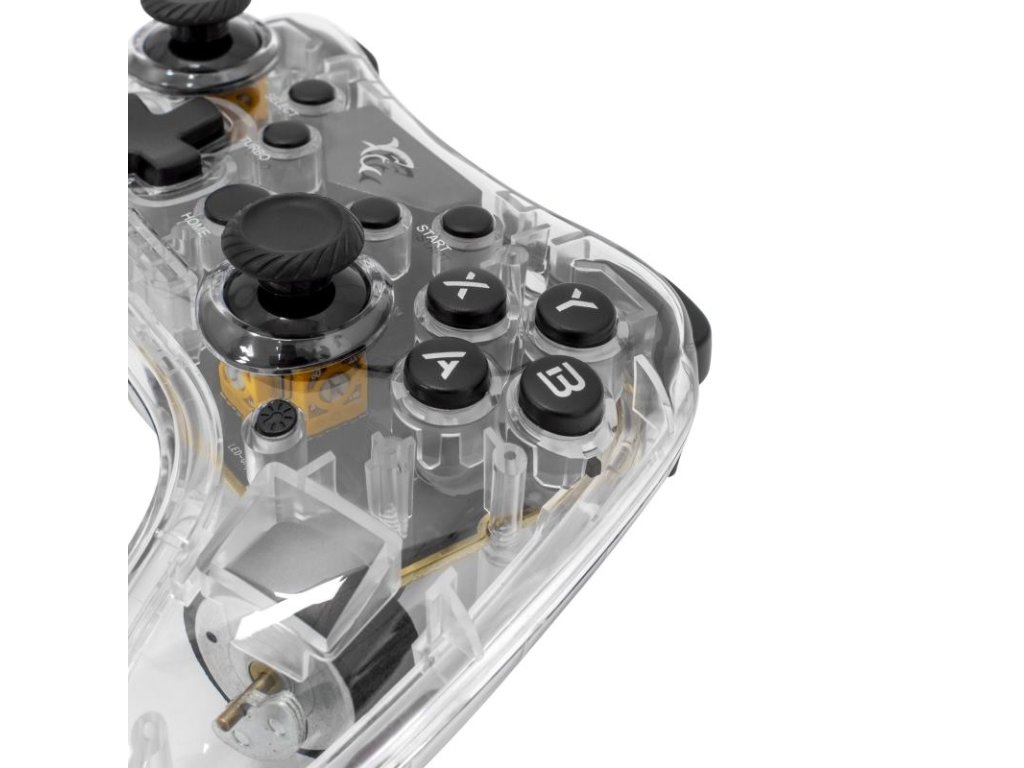 Gamepad - Ergonomický dizajn poskytuje komfort pri hraníí. 19 ergonomicky umiestnených tlačidiel, Bluetooth 5.0, Type-C, Batéria: Li-Polymer, 800 mAh, Rozsah (m): 8-10, Doba prevádzky (h): 5-10, Materiál: Plast, Dĺžka kábla (m): 1, Farba: Priehľadný obal, Rozmery (mm): 152x115x58, Hmotnosť (g): 220. Kompatibilita: Android, iOS 13.0+ (MFI), N-Switch (bez senzorov), Windows PC (káblové), konzola PS4/PS3, Doba nabíjania (h): 2-2,5, LED podsvietenie, Turbo a jasné funkcie, Podpora funkcie Key set pre Android s ďalšou aplikáciou