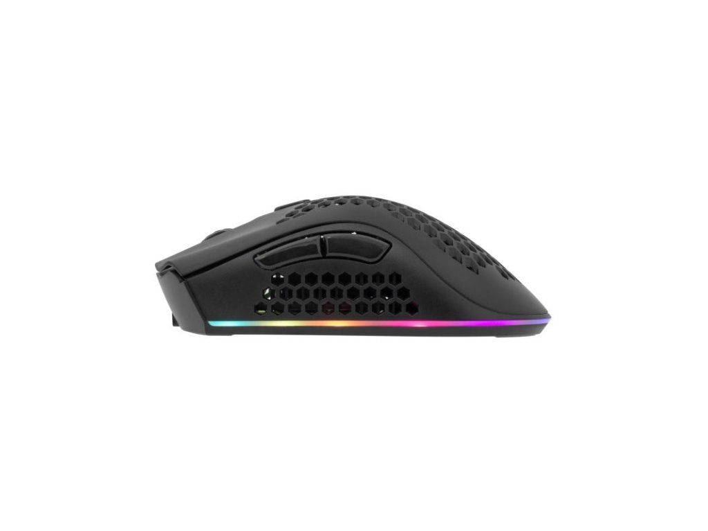 Bezdrôtová herná myš WHITE SHARK WGM-5012 LIONEL, 10 000 DPI, Typ: 6D - 6 tlačidiel, Čipset: Pixart 3325, Životnosť: 20 M lis - HUANO, Zrýchlenie: 20G, Softvér: Áno, Farba: Ružová, Povrchová úprava: Matná, Pletený kábel: Áno, Hmotnosť (g): 92, Batéria: 500 mAh lítiová, Typ snímača: Optický, Rozlíšenie (DPI): 10 000, Polling rate (Hz): 1000, Osvetlenie: RGB 16,8 M farieb, Spodné vypchávky: UPE, Materiál: Plast, Rozhranie: USB 2.0, Rozmery (mm): 131x72x41, Kompatibilita myši: Windows 7/8/10/11/MacOS