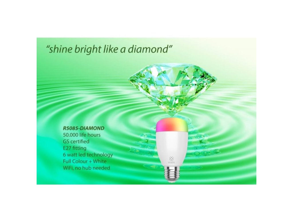 Buď použite LED žiarovku ako samostatný systém, alebo svoju LED žiarovku používajte a ovládajte spoločne a kombinujte ju s inými zariadeniami pomocou aplikácie WOOX Home na vašom smartfóne alebo tablete. R5085-Diamond môžete tiež ľahko pripojiť k systémom hlasového ovládania Google Assistant a Amazon Alexa.
